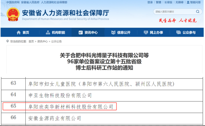11月26日,安徽省人力資源和社會(huì)保障廳公布備案設(shè)立第十五批省級(jí)博士后科研工作站名單:阜陽(yáng)欣奕華新材料科技股份有限公司(簡(jiǎn)稱“欣奕華材料”)成功獲批設(shè)站。
